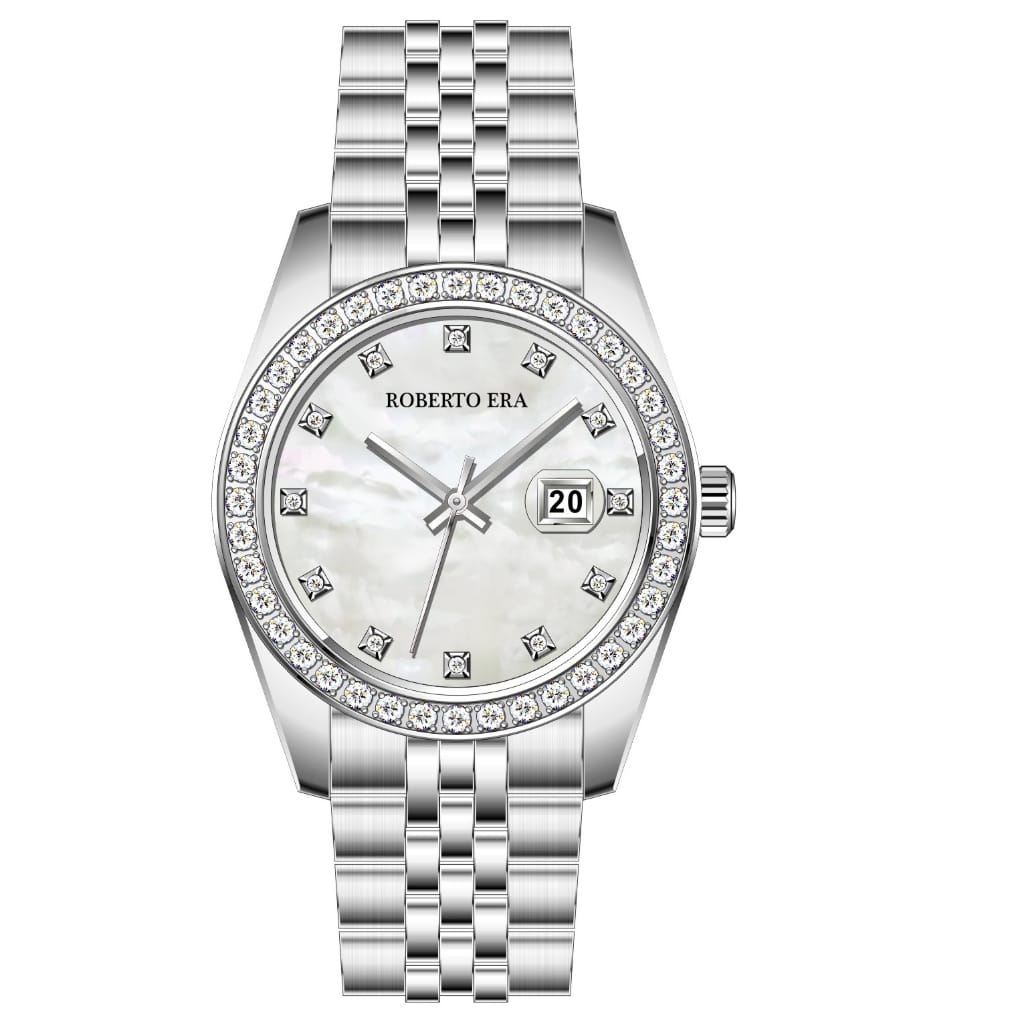 Đồng hồ đeo tay nữ thương hiệu Roberto Era chính hãng Mỹ dây đeo thép không gỉ mặt màu trắng 32mm