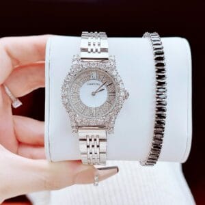 [Chính Hãng 100%] Set Đồng Hồ Nữ Kim Cương Moissanite Roberto Era Viền Đá Bạc Full Box
